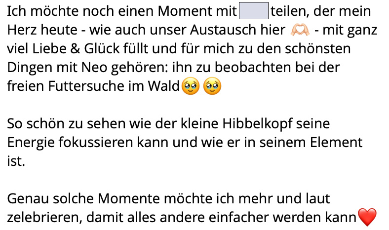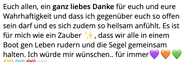 Die wöchentlichen Zoom Calls mit euch sind für mich ein fester Bestandteil meiner Woche geworden, auf den ich mich jedes Mal super freue.