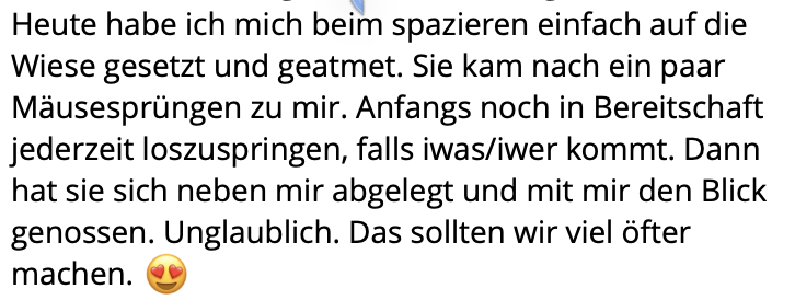 Ich lehre keine „Methode“ – ich möchte dich aufwecken und dir Wegweiser sein auf dem Weg zurück zu dir und tiefer, wahrhaftiger Beziehung zu deinem Hund und dem Leben.