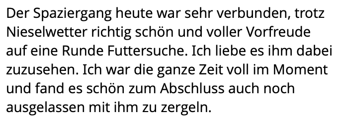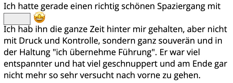Das Ergebnis ist ein ein Hund, der dir vertraut und dir folgt weil du es wirklich bist, nicht weil die Kekstüte in deiner Tasche so verlockend knistert.