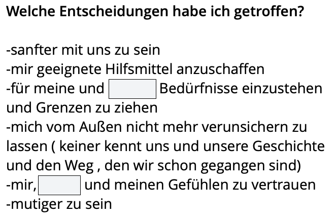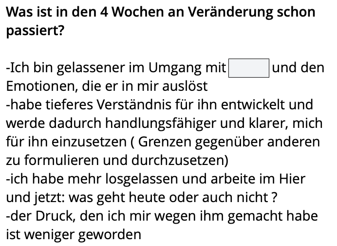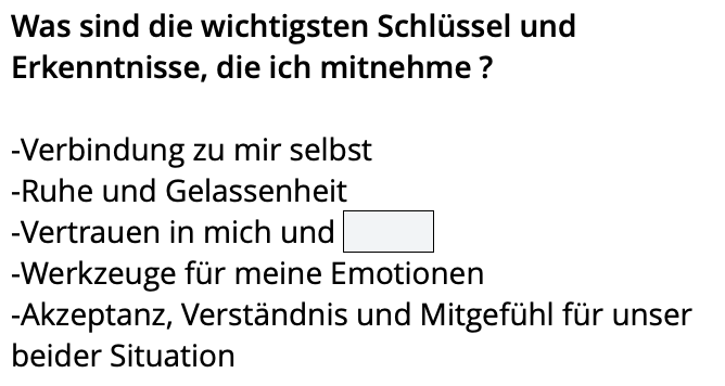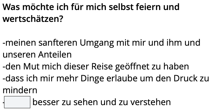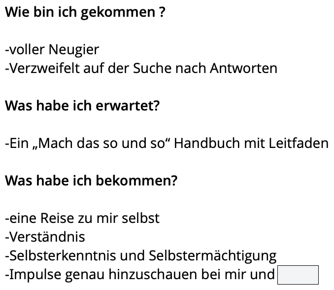 - Analyse des Menschen: Welche Themen bringst du als Mensch mit hinein. Erfahrung, Gefühle, Traumata, körperliche Möglichkeiten. etc. werden wir beleuchten?