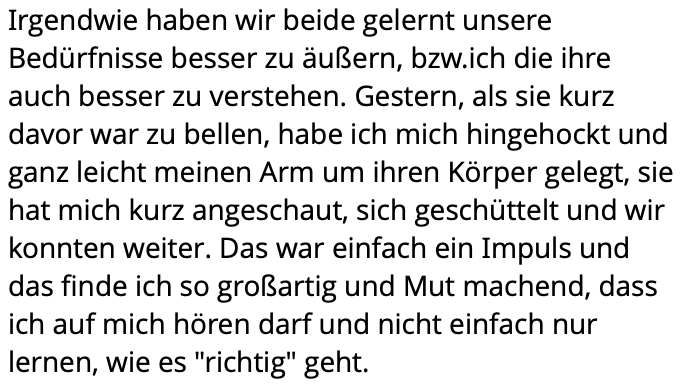 ich lehre seit 15 Jahren diesen Weg – was mir am häufigsten begegnet sind völlig überforderte Hunde und hinten dran völlig überforderte Frauen.